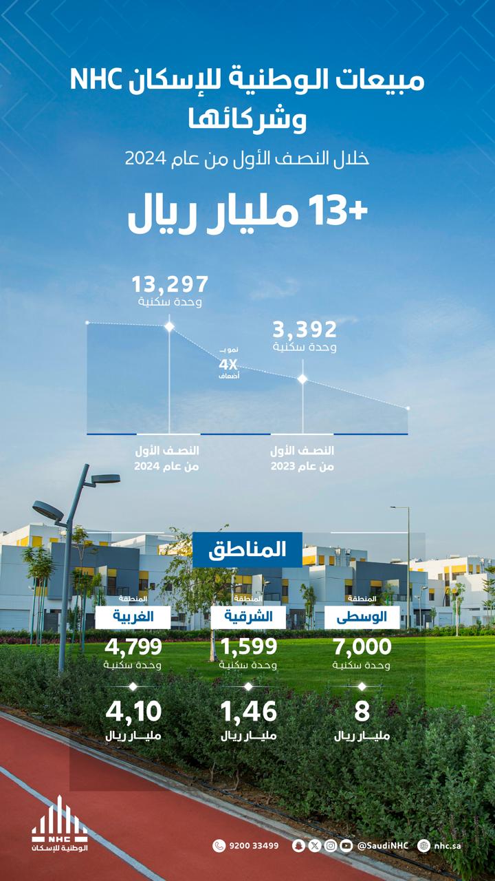 أكثر من 13 مليار ريال مبيعات “الوطنية للإسكان” وشركائها خلال النصف الأول 2024