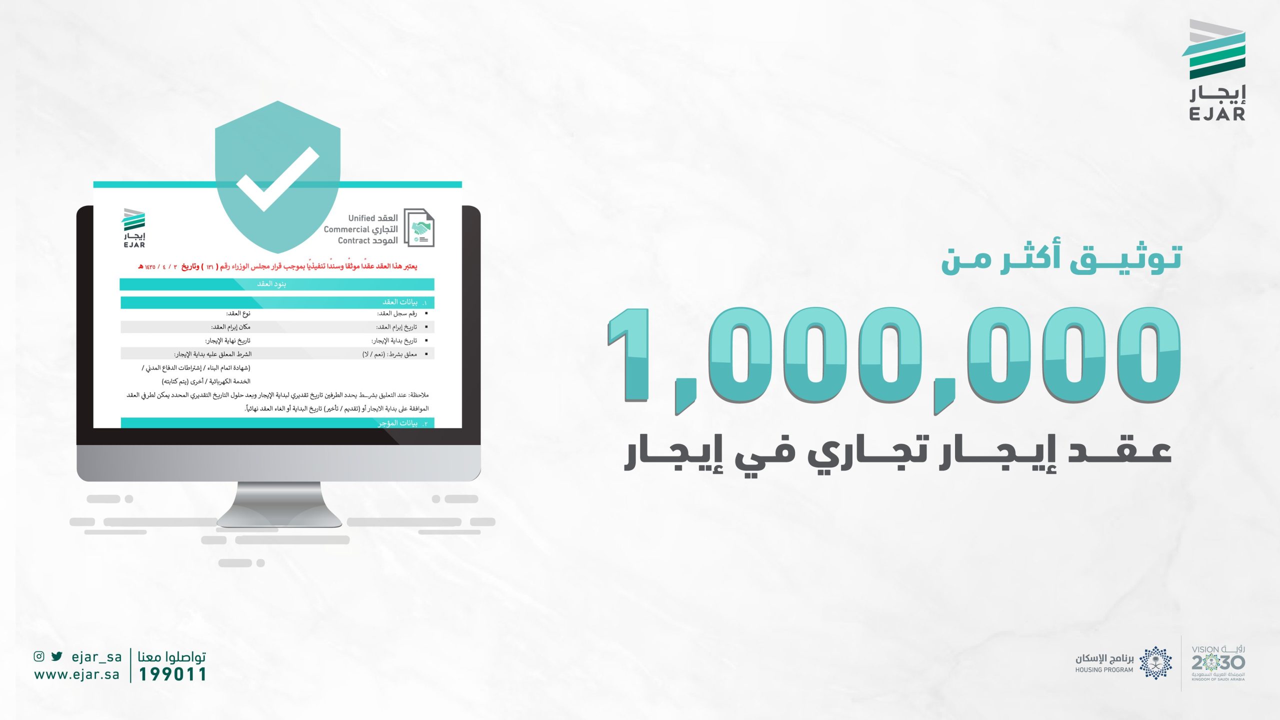 أعلن برنامج إيجار عن تحقيق قطاع الإيجار التجاري أرقاماً قياسية بتوثيقه أكثر من مليون عقد إيجار تجاري في الشبكة الإلكترونية لخدمات الإيجار منذ تأسيسها، كاشفاً عن توثيق ما يقارب 500 ألف عقد إيجار تجاري خلال الأشهر الـ 12 الماضية، مبيناً أن هذه الأرقام تحققت في ظل ما تقدمه شبكة إيجار من خدمات ومميزات للمستفيدين من قطاع الإيجار العقاري التجاري.