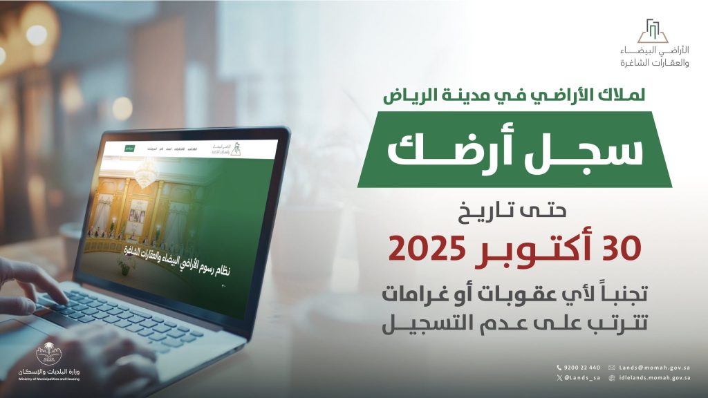 وحذرت البرنامج من أن عدم التسجيل في المدة النظامية يعرّض الملاك لغرامات قد تصل إلى 100% من قيمة الرسم المستحق، مشيرةً إلى أن التسجيل متاح عبر الموقع الإلكتروني المخصص للبرنامج: [idlelands.momah.gov.sa/ar](https://idlelands.momah.gov.sa/ar).