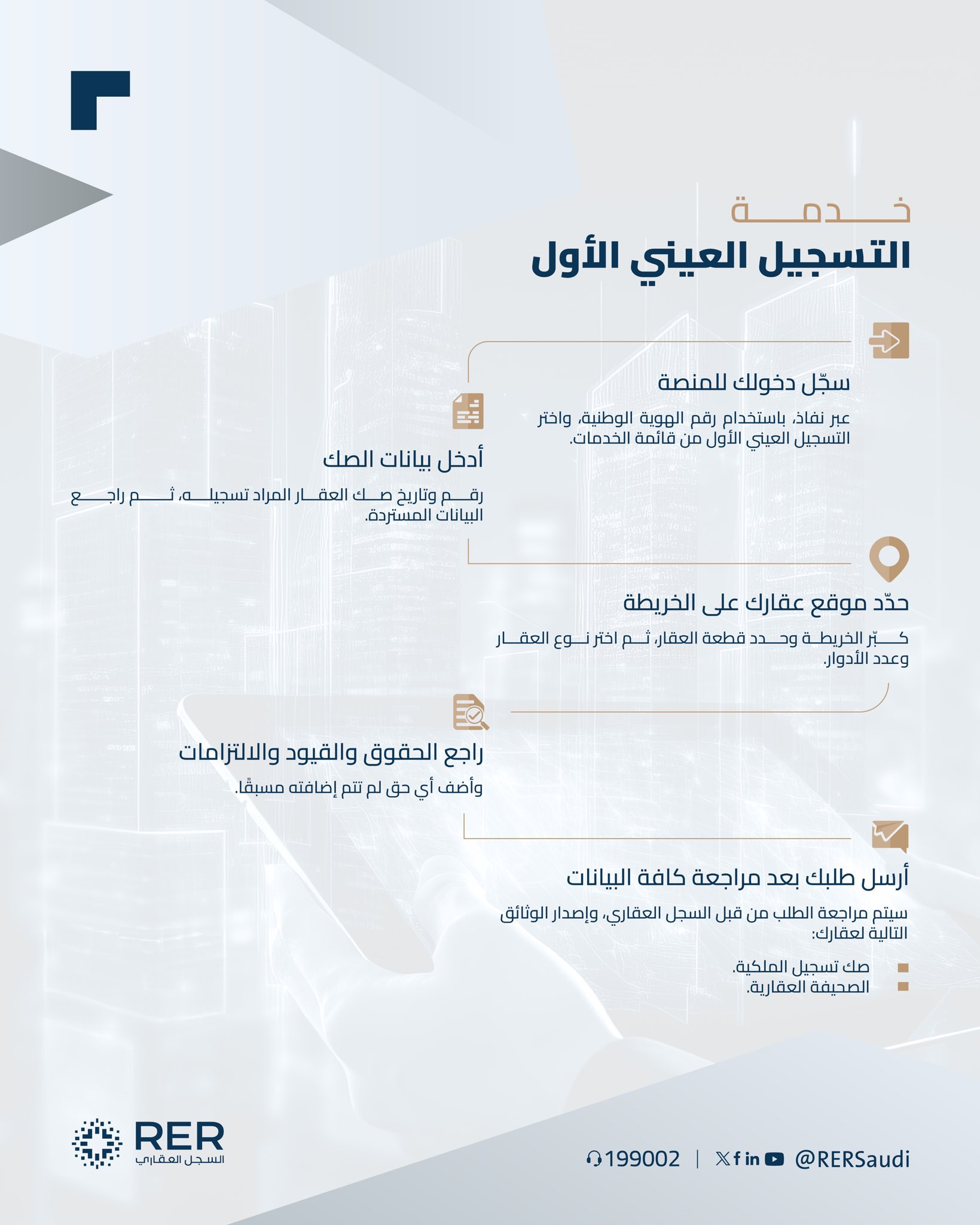 باتباع هذه الخطوات، يمكنك إتمام عملية التسجيل العيني الأول لعقارك وضمان حقوق ملكيتك بكل سهولة وأمان.