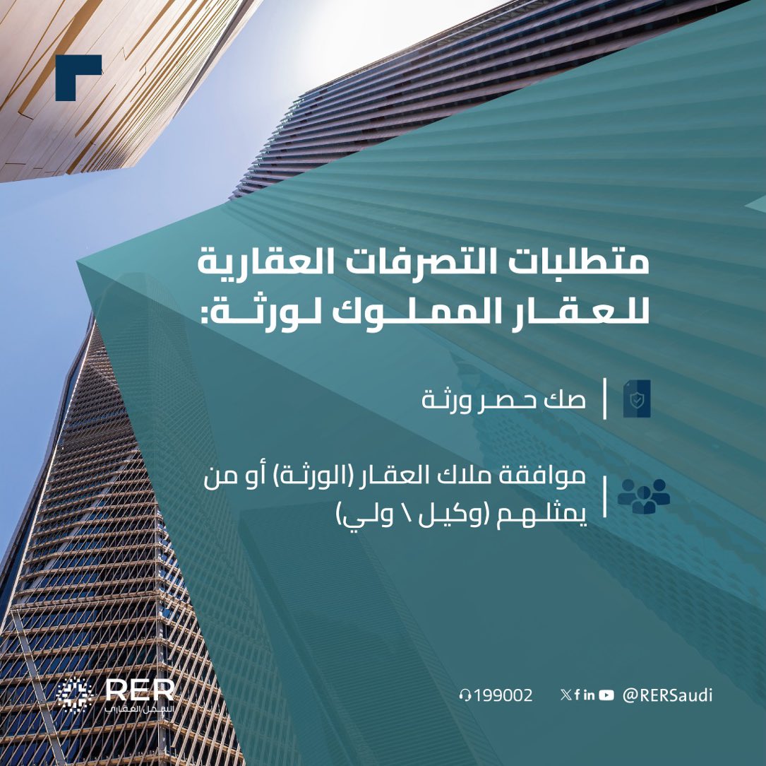 وبحسب إنفوجراف نشره السجل العقاري على حسابه بموقع التواصل الاجتماعي “إكس”، فإن متطلبات التصرقات العقارية للعقار المملوك لورثة تشمل الآتي: