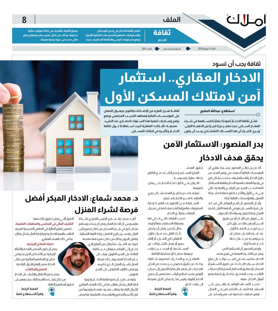 صحيفة “أملاك” العقارية أجرت استطلاعًا حول ثقافة الادخار وتأثيره في امتلاك المسكن.