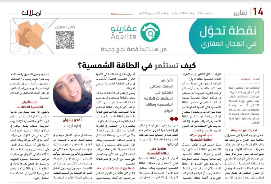 انطلاقا من شغفي لنمو رأس المال، وزيادة الثروات من خلال الاستثمار، بالتركيز فيما يتعلق برؤية المملكة 2030م، أقدم دراسة مختصرة من خلال تدريب أحد منظمات الطاقات المتجددة وربطها وتحليلها بخبرة إدارة الثروات: