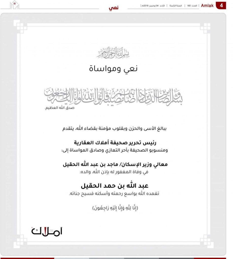 ببالغ اﻷسى والحزن وبقلوب مؤمنة بقضاء الله، يتقدم
