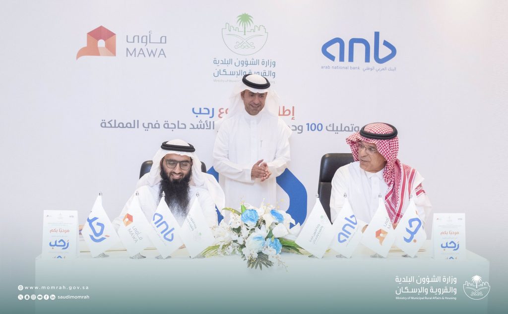 شهد وزير الشؤون البلدية والقروية والإسكان، ماجد بن عبدالله الحقيل، توقيع اتفاقية تعاون بين جمعية مأوى الخيرية والبنك العربي الوطني anb، لبناء 100 وحدة سكنية للأسر الأشد حاجة من مستفيدي الإسكان التنموي في مختلف مناطق المملكة ضمن مشروع “رحَب” المجتمعي.