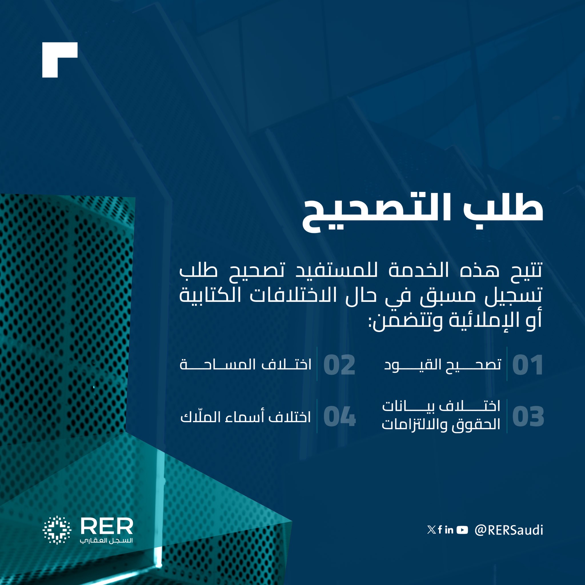 أوضحت منصة السجل العقاري الحالات التي تنطبق عليها شروط خدمة طلب التصحيح لبيانات عقارك عبر منصتها.