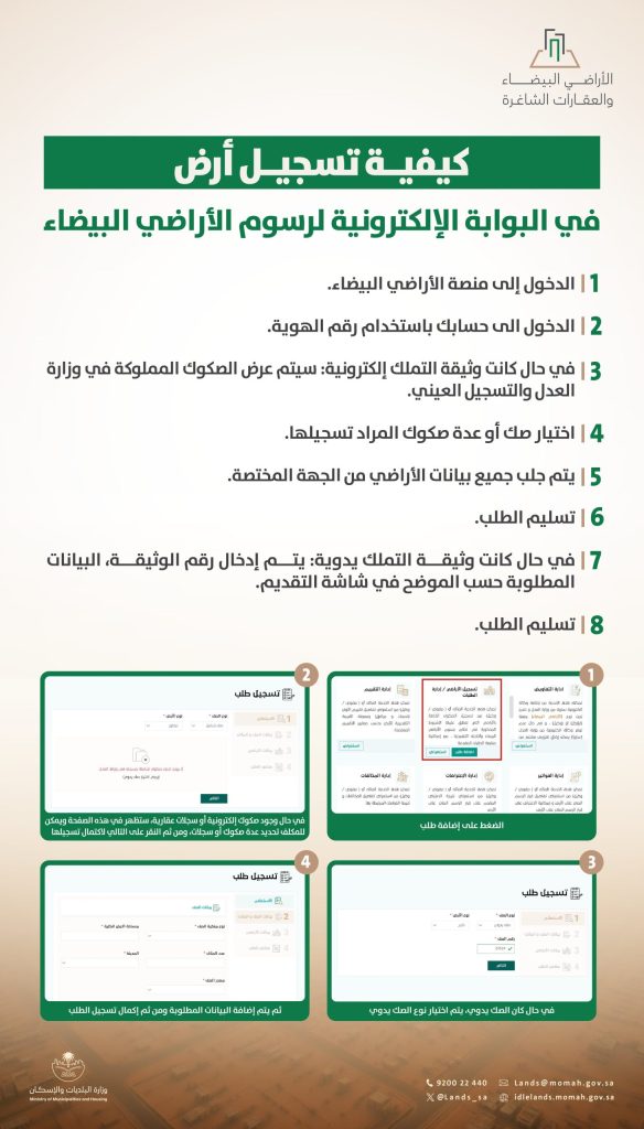 خطوات تسجيل الأرض إلكترونيًا في بوابة الأراضي البيضاء