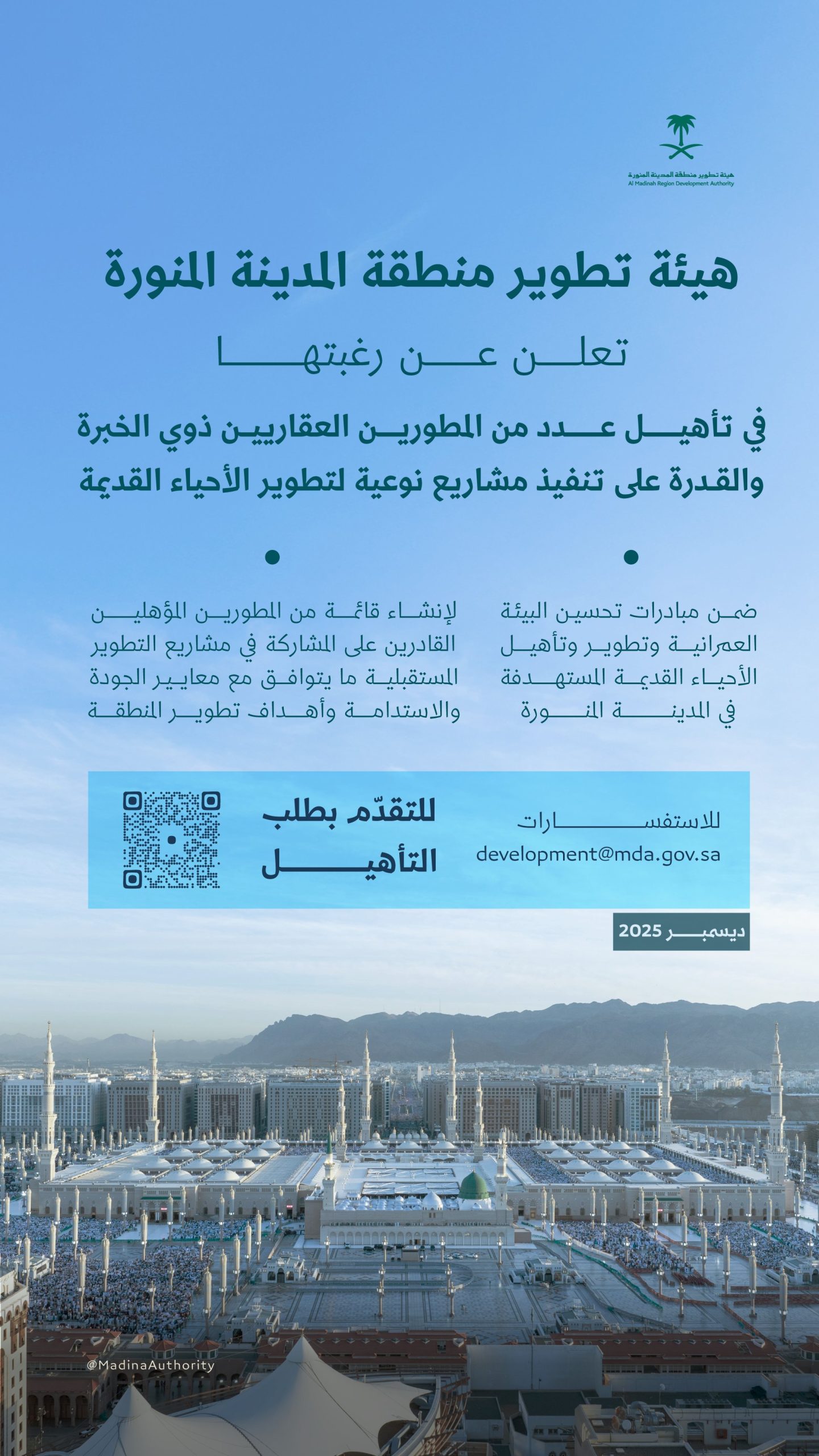 ويأتي هذا التوجه ضمن مبادرات تحسين المشهد العمراني، وتأهيل الأحياء القديمة المستهدفة، بهدف إعداد قائمة من المطورين المؤهلين القادرين على الإسهام في مشاريع التطوير المستقبلية، بما ينسجم مع معايير الجودة والاستدامة، ويدعم أهداف التنمية الشاملة للمنطقة.