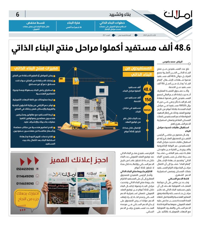وقت القرائه: < 1 دقيقة48.6 ألف مستفيد أكملوا مراحل منتج البناء الذاتي