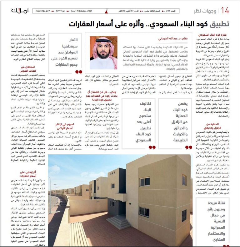 د. عبدالله الخرماني يكتب: تطبيق كود البناء السعودي.. وأثره على أسعار العقارات