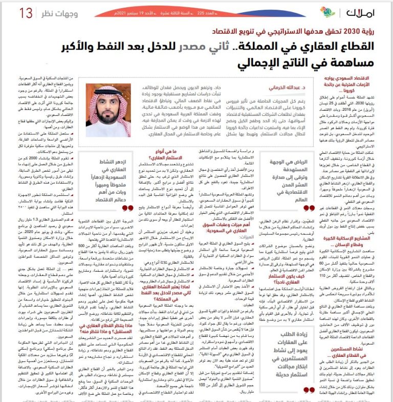 د. عبدالله الخرماني يكتب: القطاع العقاري.. ثاني مصدر للدخل بعد النفط والأكبر مساهمة في الناتج الإجمالي